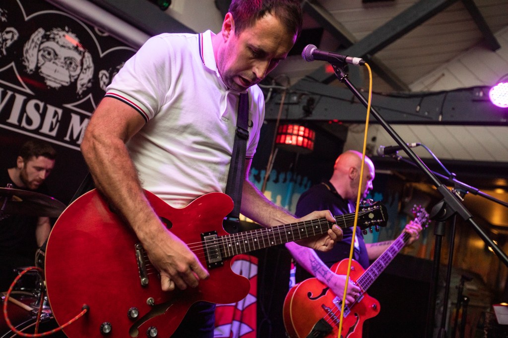 When the government announced nearly a fortnight ago that they’d be extending the June re-opening date to July it looked like fully live music was out the window again. With venues already suffering financially from the last year and a half all of a sudden countless events had to be rescheduled into already busy diaries in the hope that they’ll be able to run at capacity next month. At the decision of the bands and Three Wise Monkeys this show went ahead as a socially distanced gig, with a limited crowd of 30 people seated. It’s not the ideal situation, especially for full bands, but, after over a year, it’s just great to see live music coming back again, a sort of soft start for full on gigs.