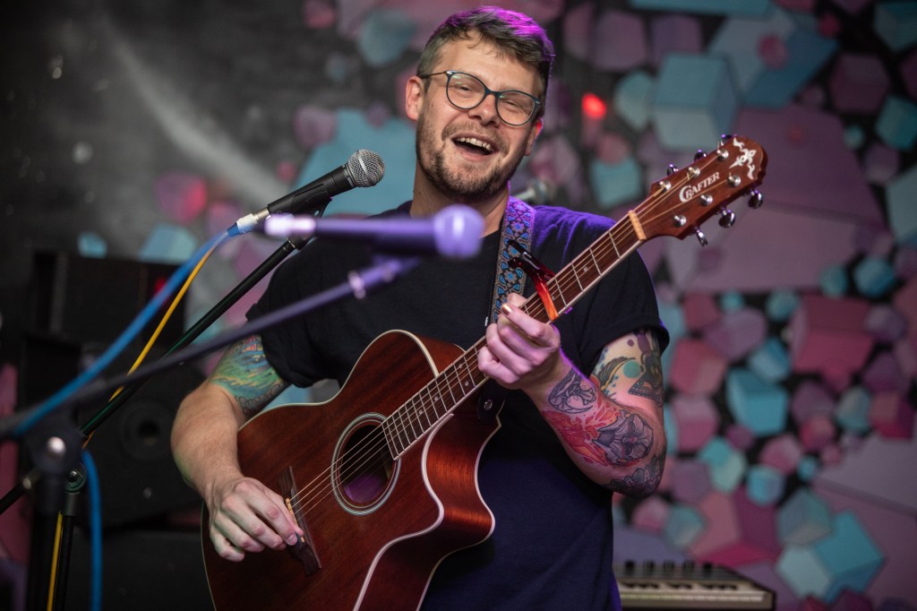Opening the night is Daniel Stephen Turner, a solo musician who first came to my attention back in December, offering his time to be part of our alternative hootenanny with Black Cactus Studio. He has been getting himself out there since things slowly started to reopen, playing countless open mic nights and spreading the word of his music. Despite playing acoustically, his songs sound as though they were written with full band in mind – I’d describe it as similar to what I thought when I first came across Oxygen Thief live, the energy behind it more punk than refrained.