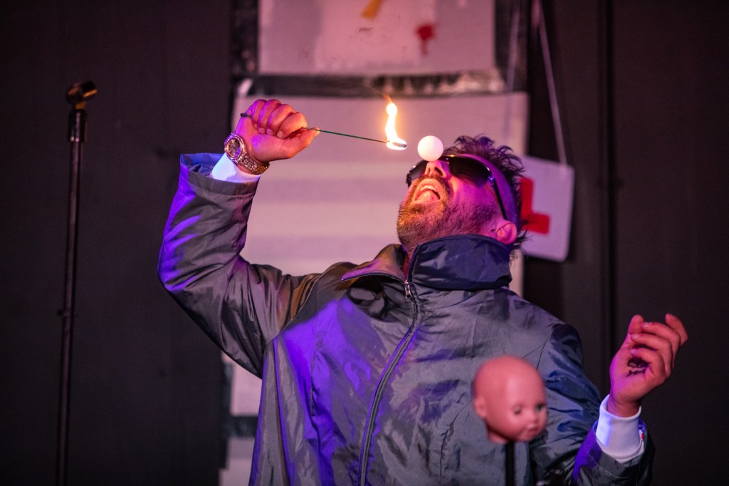 Kicking the festival off for me, on the Thursday night, is The Masque of Anarchy, a recital of poetry from 1819, read by Colchester Arts Centre’s Anthony Roberts. Listening to the poem, a piece set after the Peterloo Massacre, I was impressed by Anthony’s ability to recall near half hour of prose while delivering it with a tone which kept the listeners interest. Demonstrating the utter variety of performers at the Fringe, I follow this with Friendzy, a comedy set complete with magic over at The Soundhouse. Apparently this should have been a duo performing, one half of the pair unfortunately positive for covid (a reminder that despite things appearing back to normal everything is still a bit up in the air). It was held together well despite the circumstances, the blindfolded knife throwing a real highlight of fifty minutes of laughs.