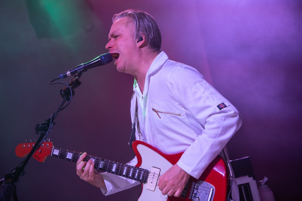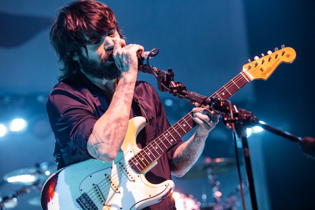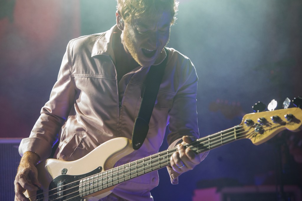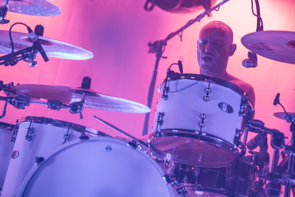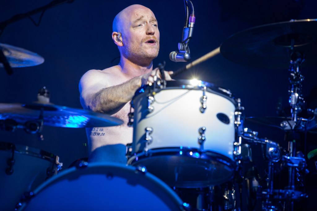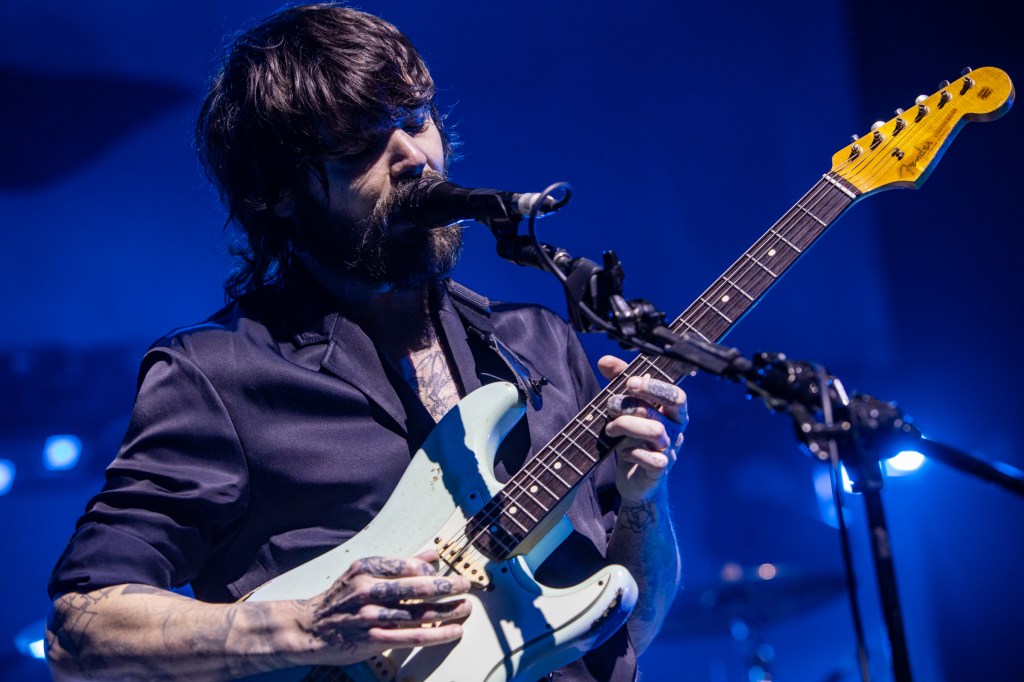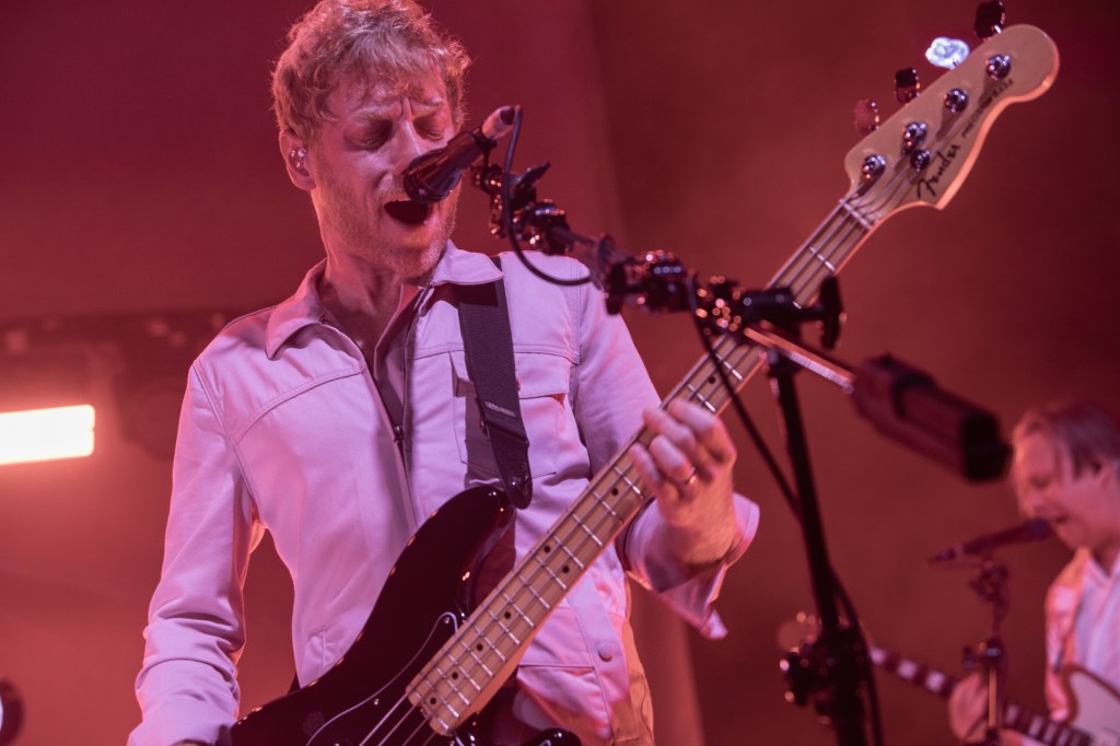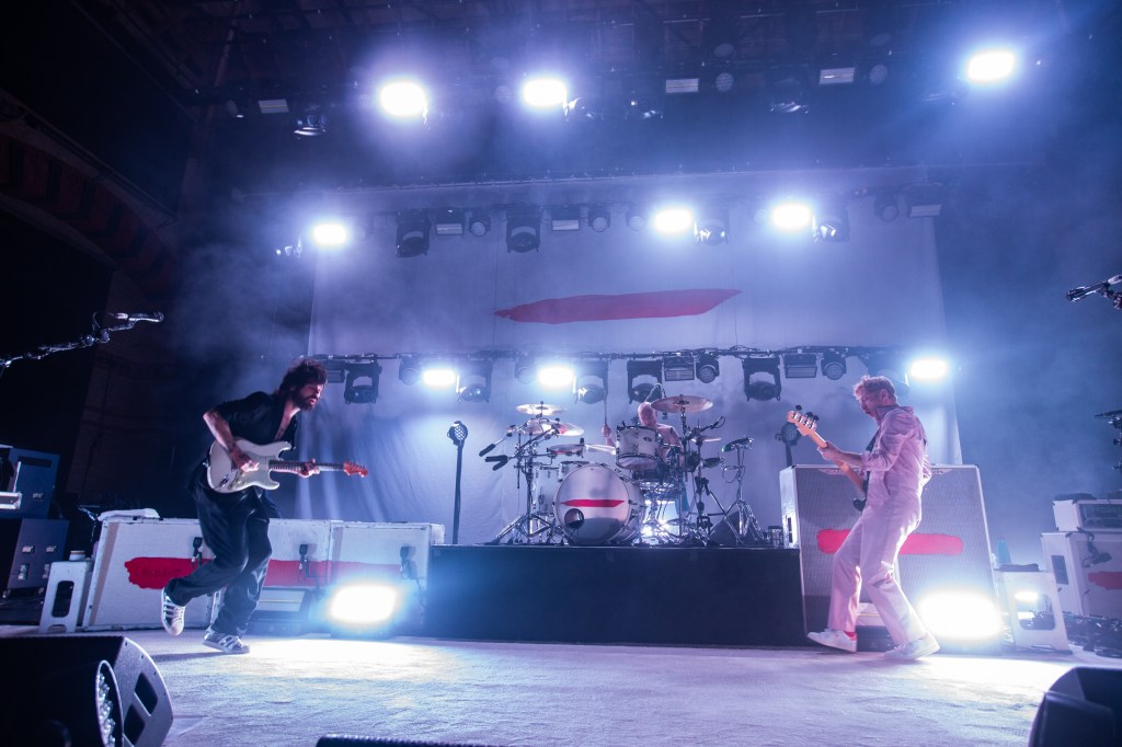 Biffy Clyro haven’t really played venues the size of the Corn Exchange in the UK for a while, the band feeling much closer together on stage than the last few times I’ve seen them. They’ve got a tonne of new material to play with on this occasion too, releasing A Celebration Of Endings during the height of the pandemic and releasing a surprise follow up, The Myth of the Happy Ending, just a week ago and there’s a real excitement around hearing some of the new tracks live. These two albums are, in my opinion, the best two records they’ve put out in a while and it’s a relief to hear how well they translate to the live stage. Opening DumDum is a more synth and delay led track which sees the live members, Mike Vennart and Richard Ingram, heading onto stage first to start building the atmosphere. By the time A Hunger In Your Haunt gets going though they’re in full guitar assault, the end section full of odd timed stabs, complete with perfectly timed flashes of light – it’s sections like this that first drew me towards the band and now, nine albums into their career, they’ve really worked out how to play on these sections live with new odd timings to stop you getting too comfortable.