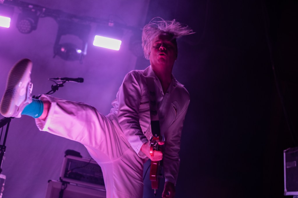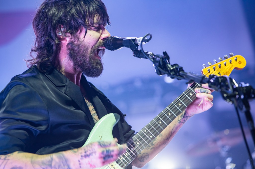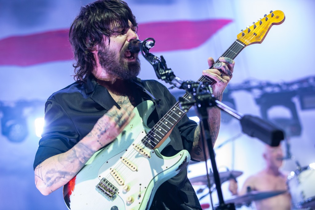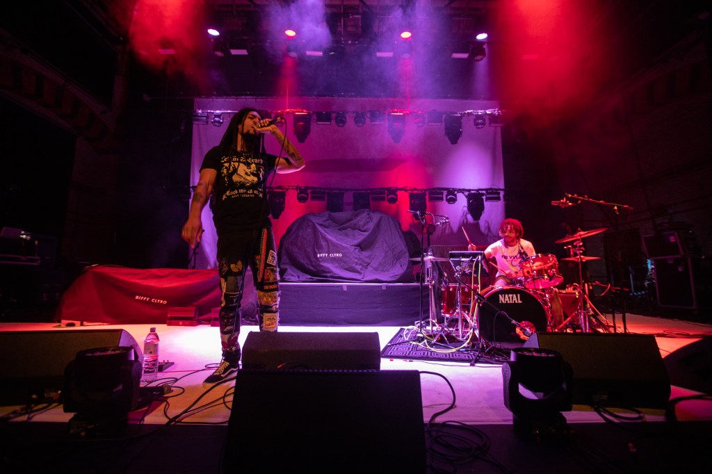 I’m not sure there’s ever been a more literal example of the term “warm up band” than Bob Vylan. The two piece bring to the Corn Exchange more energy than I can remember seeing in a support band in a long time – by the time the first track is in full flow, vocalist Bobby Vylan is right off of the stage and into the crowd, getting everyone jumping about during I Heard You Want Your Country Back. The lyrics seem apt given what had happened the night before; “Got the gammons on retreat, And their blood boils over when we speak,” when someone apparently needed to be removed for yelling abuse at the band. I can see why their set may be provocative to some, with the band’s quite, erm, outspoken distain for the Met Police, for example, but then this came only a few hours after I saw the Met in the news again, an officer charged with child sex offences – their anger at certain topics is justified, just listen to the lyrics and realise that the topics are meant to cause that anger but, y’know, don’t shoot the messenger, look into why they’re angry at these institutions in the first place. Leaving drummer Bobbie Vylan on stage, Bobby decided to spend the later half of the set in the crowd, at one pointing climbing up to the balcony (and getting stuck up there). One of the most entertaining support bands I’ve seen in a while – an interesting choice to support Biffy Clyro but I’m glad to have been introduced to them.