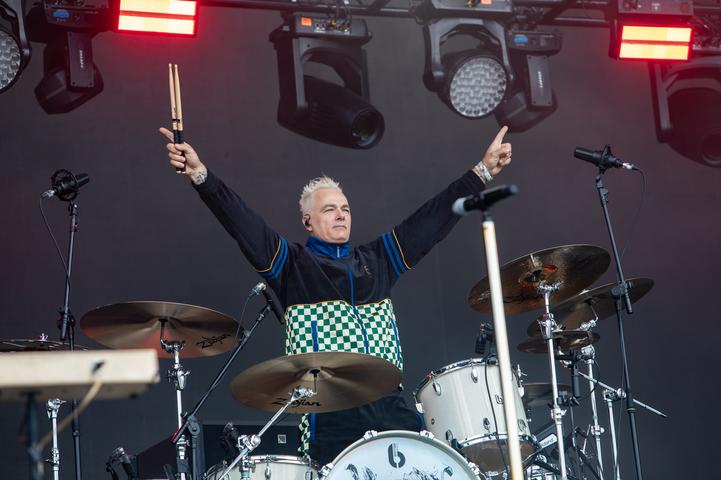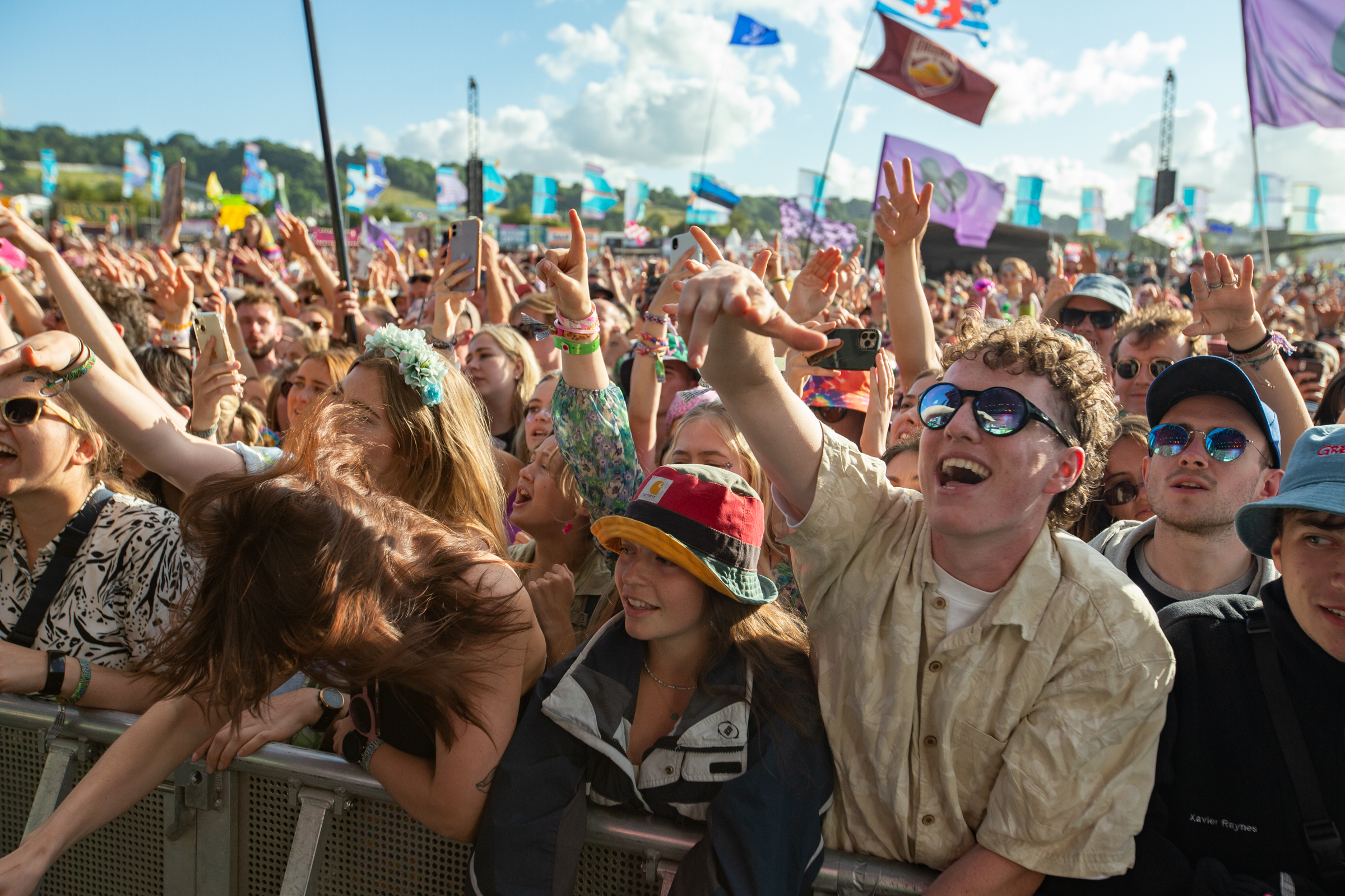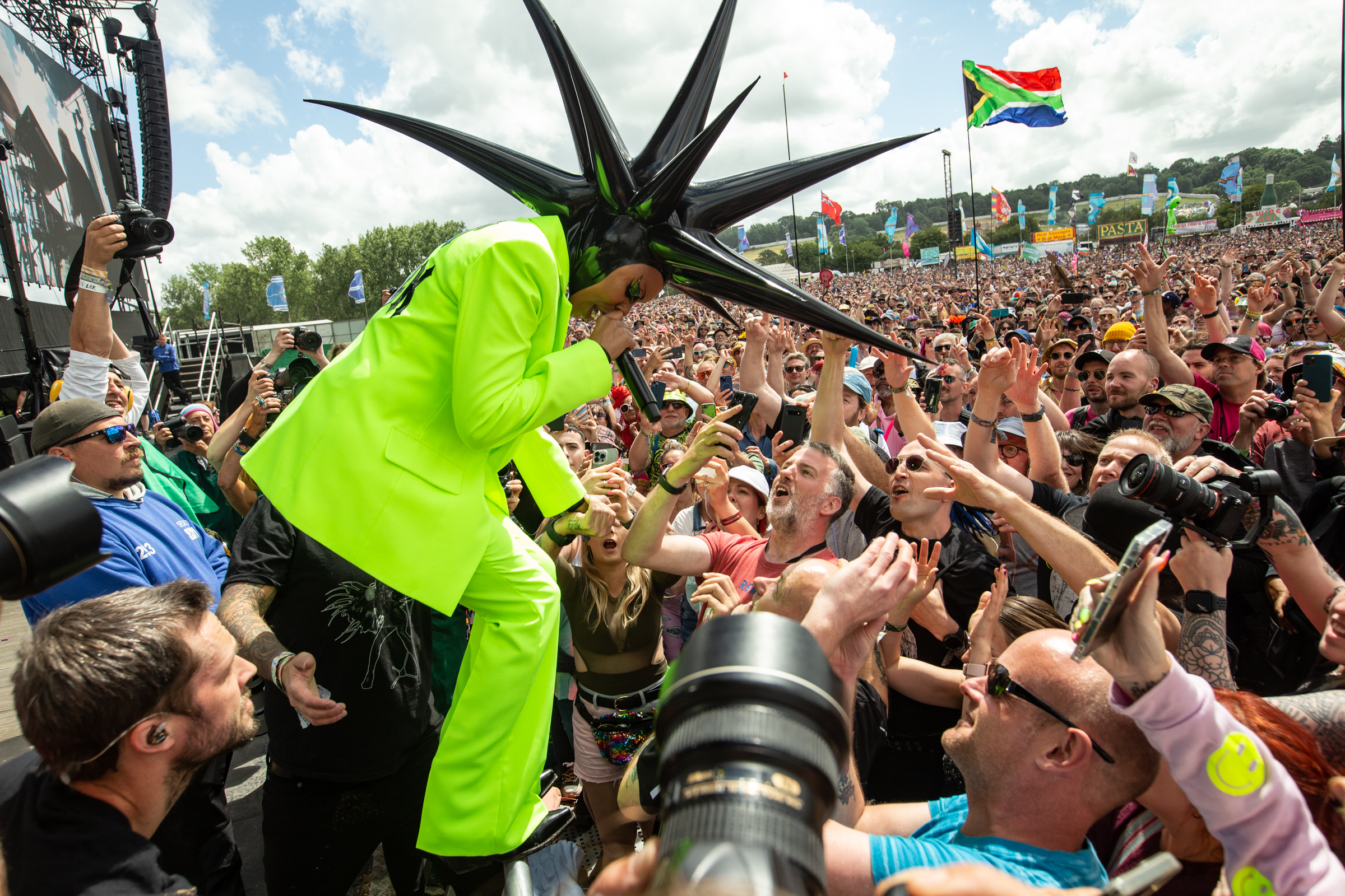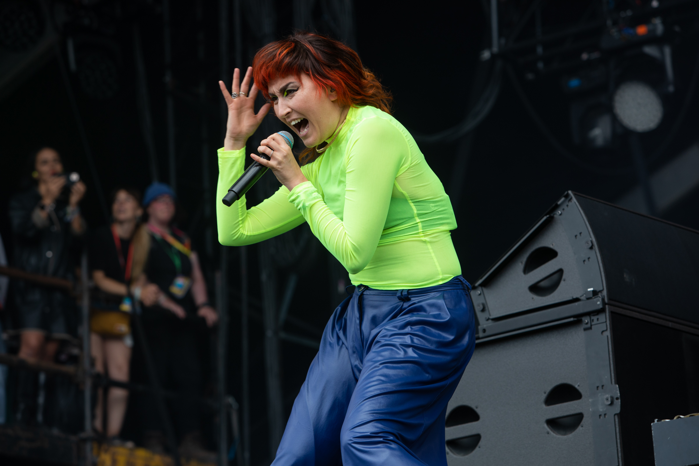 While stage hopping I catch a bit of Asylums over on the Leftfield stage. Personally I think Asylums are criminally underrated – they deserve a far bigger audience than they receive and, with the quality of their songs and the amount of energy they put into their performance they could be playing bigger stages. I haven’t seen them in a few years but they seem to just get better and better; the songs are great and the band members contort themselves into all kinds of shapes while giving it their all performing them. A really fun band, I’m glad I got to stop by for a while to catch them again. I also stop by, a complete contrast, Olivia Rodrigo on the Other Stage – I appreciate I’m not the target audience for her music but clearly there’s a huge number of people excited to see her live, the volume of the fans before she’s even taken to the stage is huge. I also appreciate that her backing band is made up of people of a similar age, rather than just general session musicians – it feels more like a live band than a solo artist in that sense. What’s more to say? She sounds great, the band works well, the kids love it.