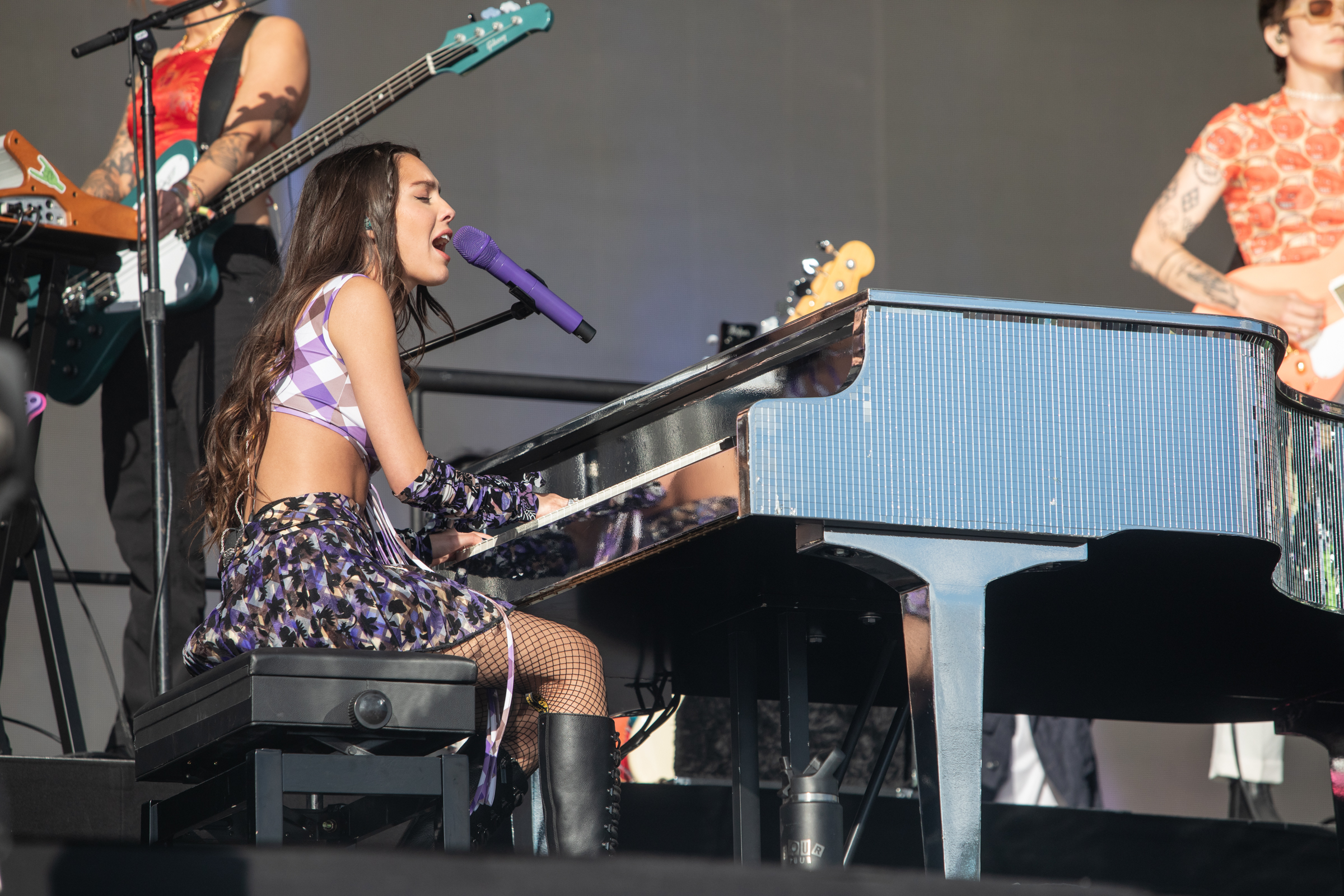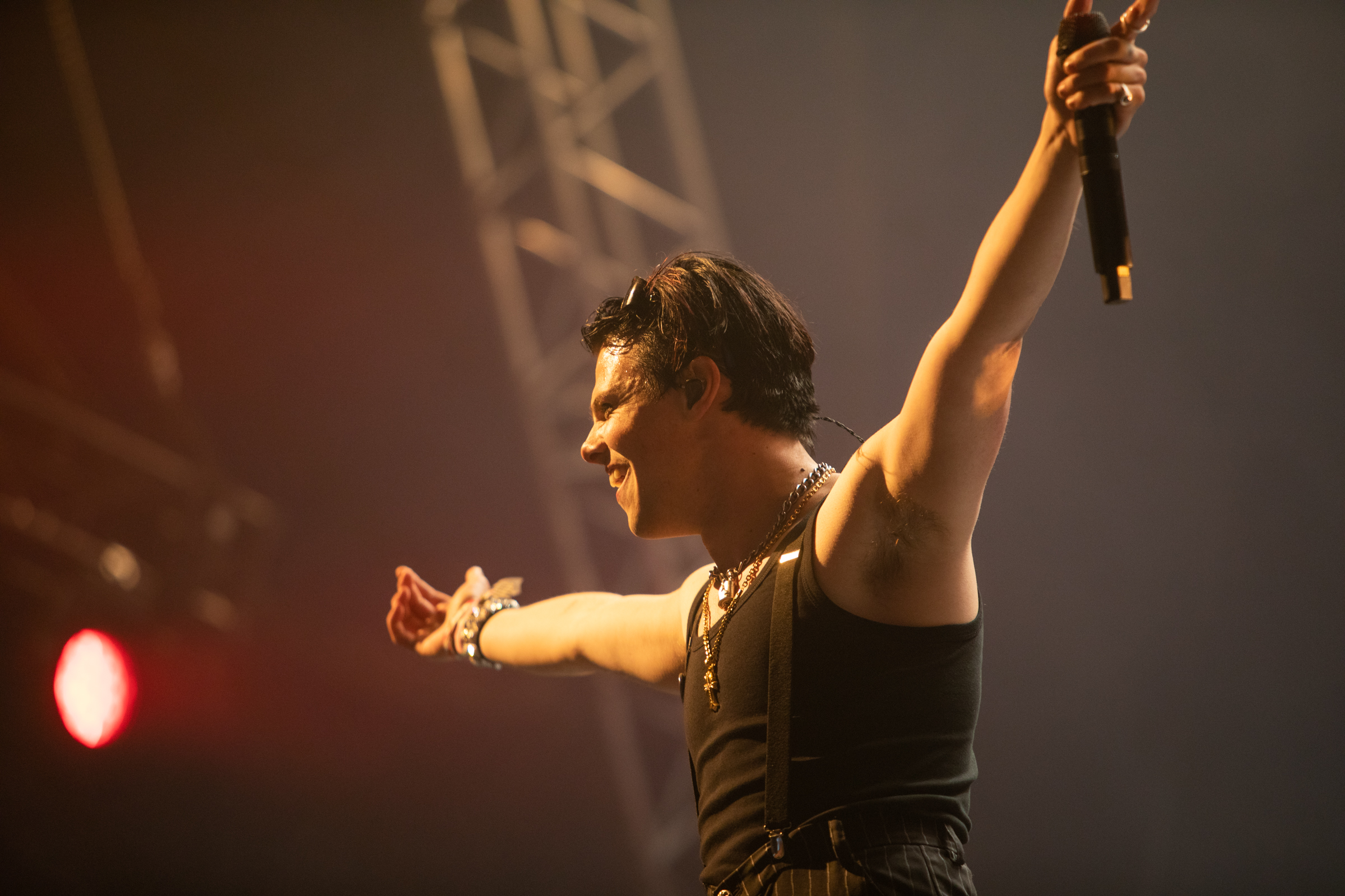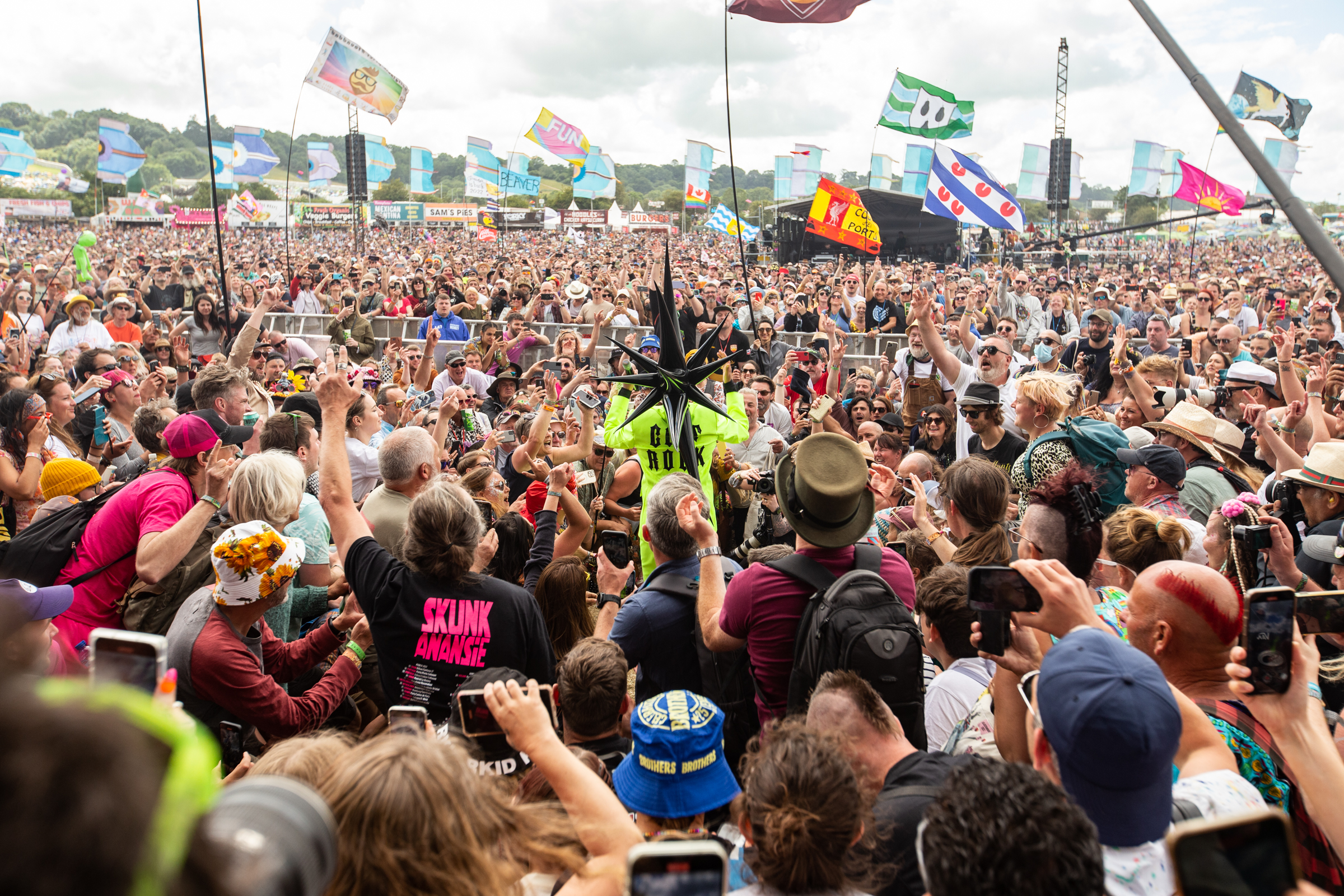 While stage hopping I catch a bit of Asylums over on the Leftfield stage. Personally I think Asylums are criminally underrated – they deserve a far bigger audience than they receive and, with the quality of their songs and the amount of energy they put into their performance they could be playing bigger stages. I haven’t seen them in a few years but they seem to just get better and better; the songs are great and the band members contort themselves into all kinds of shapes while giving it their all performing them. A really fun band, I’m glad I got to stop by for a while to catch them again. I also stop by, a complete contrast, Olivia Rodrigo on the Other Stage – I appreciate I’m not the target audience for her music but clearly there’s a huge number of people excited to see her live, the volume of the fans before she’s even taken to the stage is huge. I also appreciate that her backing band is made up of people of a similar age, rather than just general session musicians – it feels more like a live band than a solo artist in that sense. What’s more to say? She sounds great, the band works well, the kids love it.