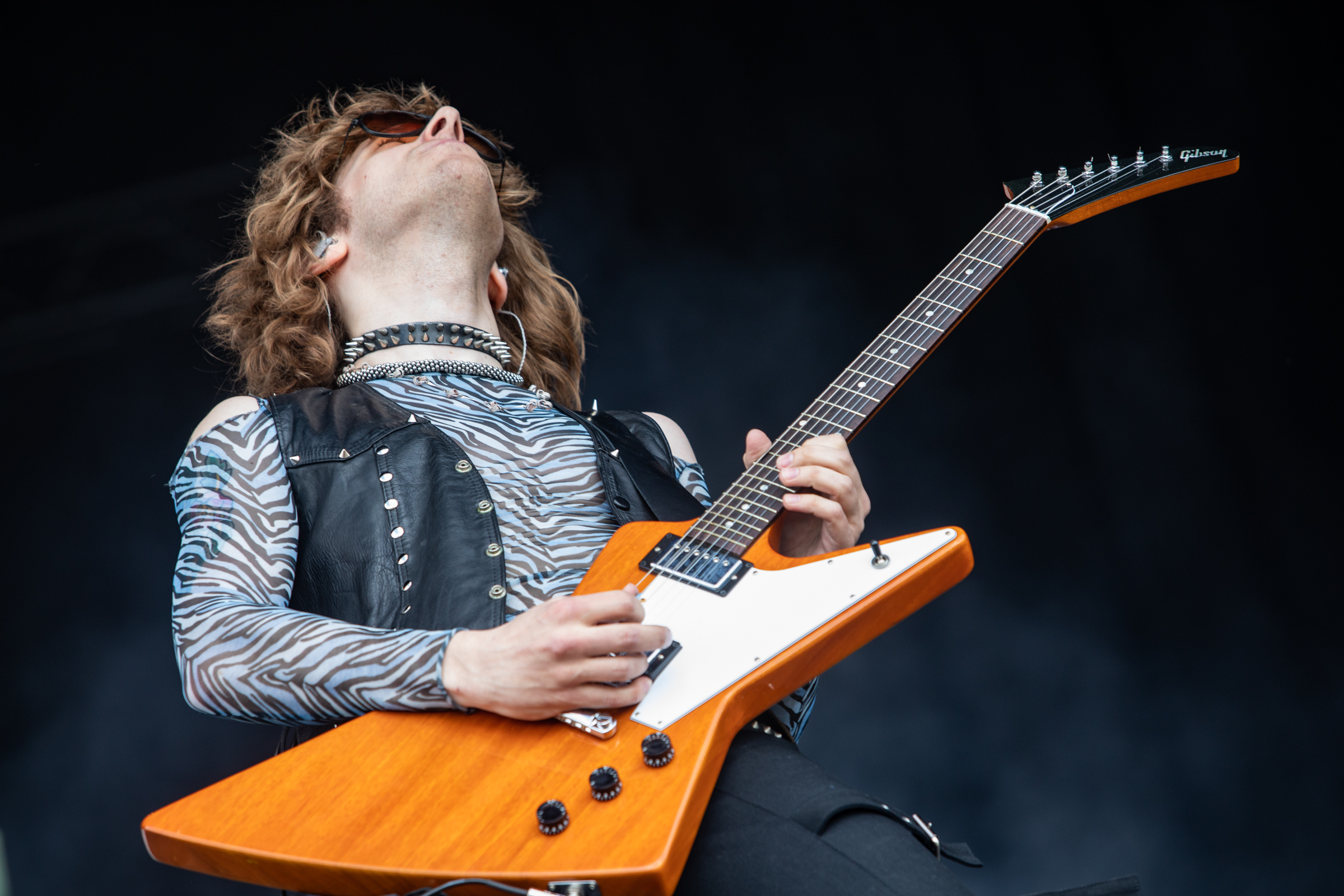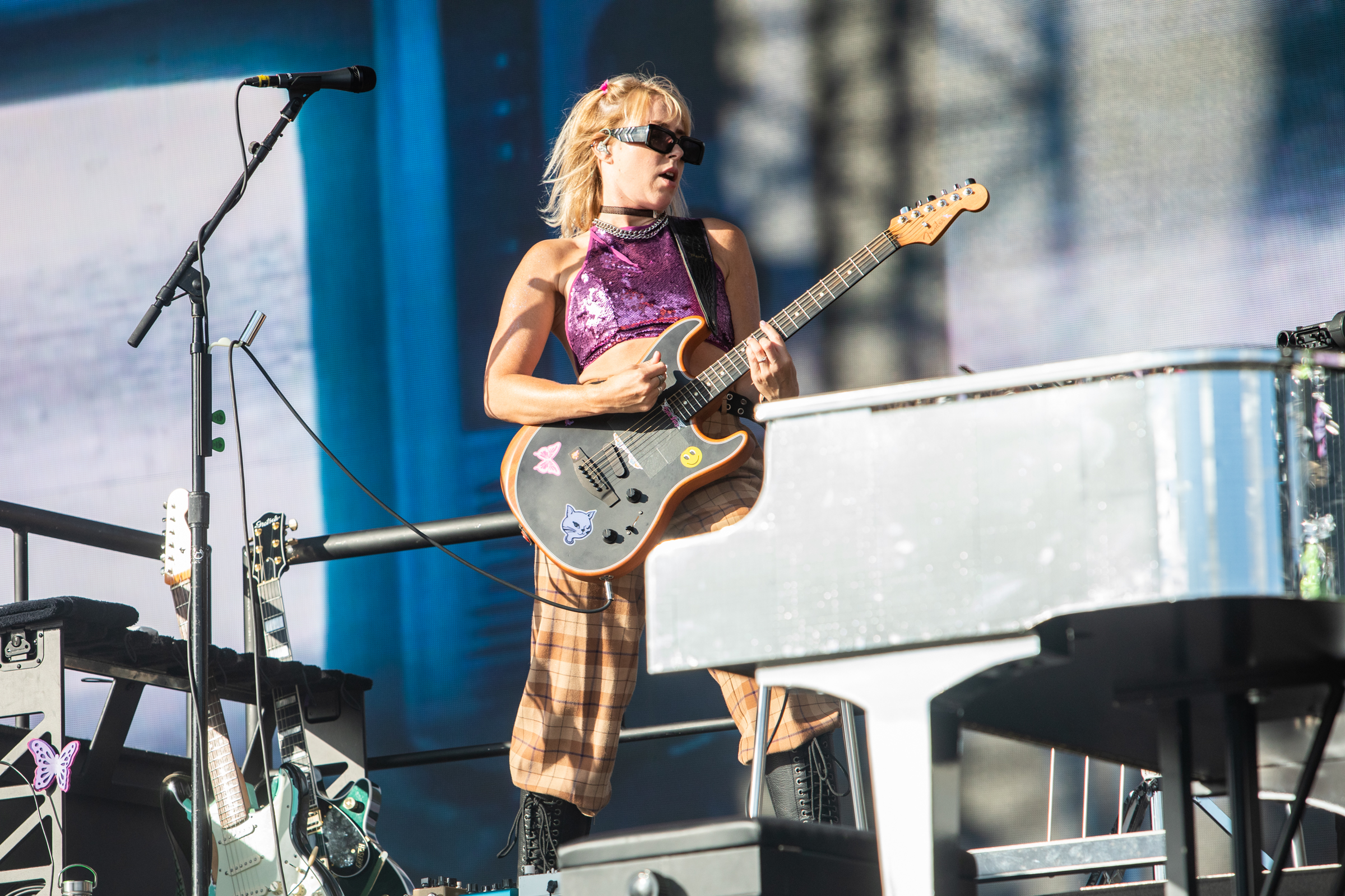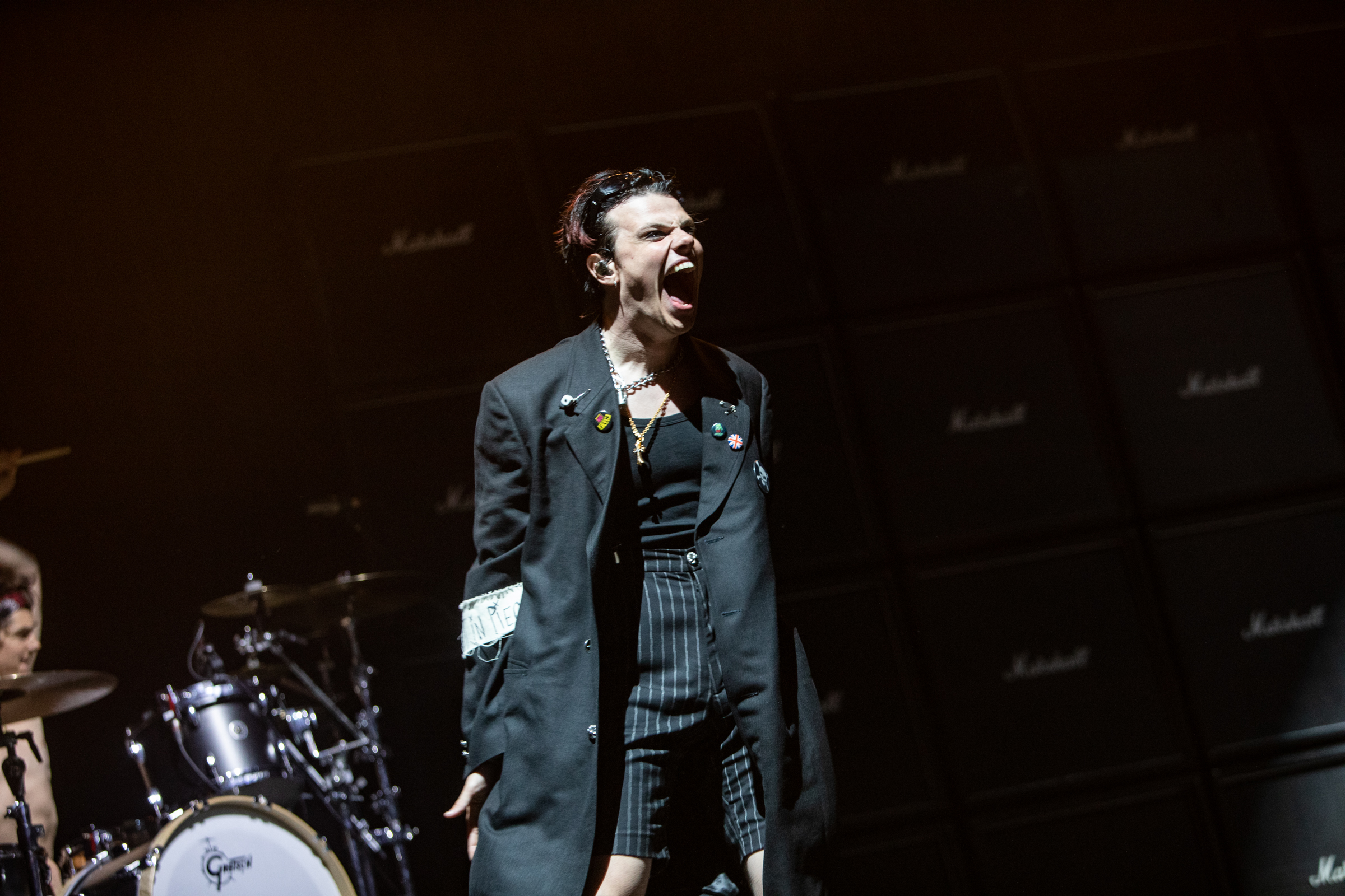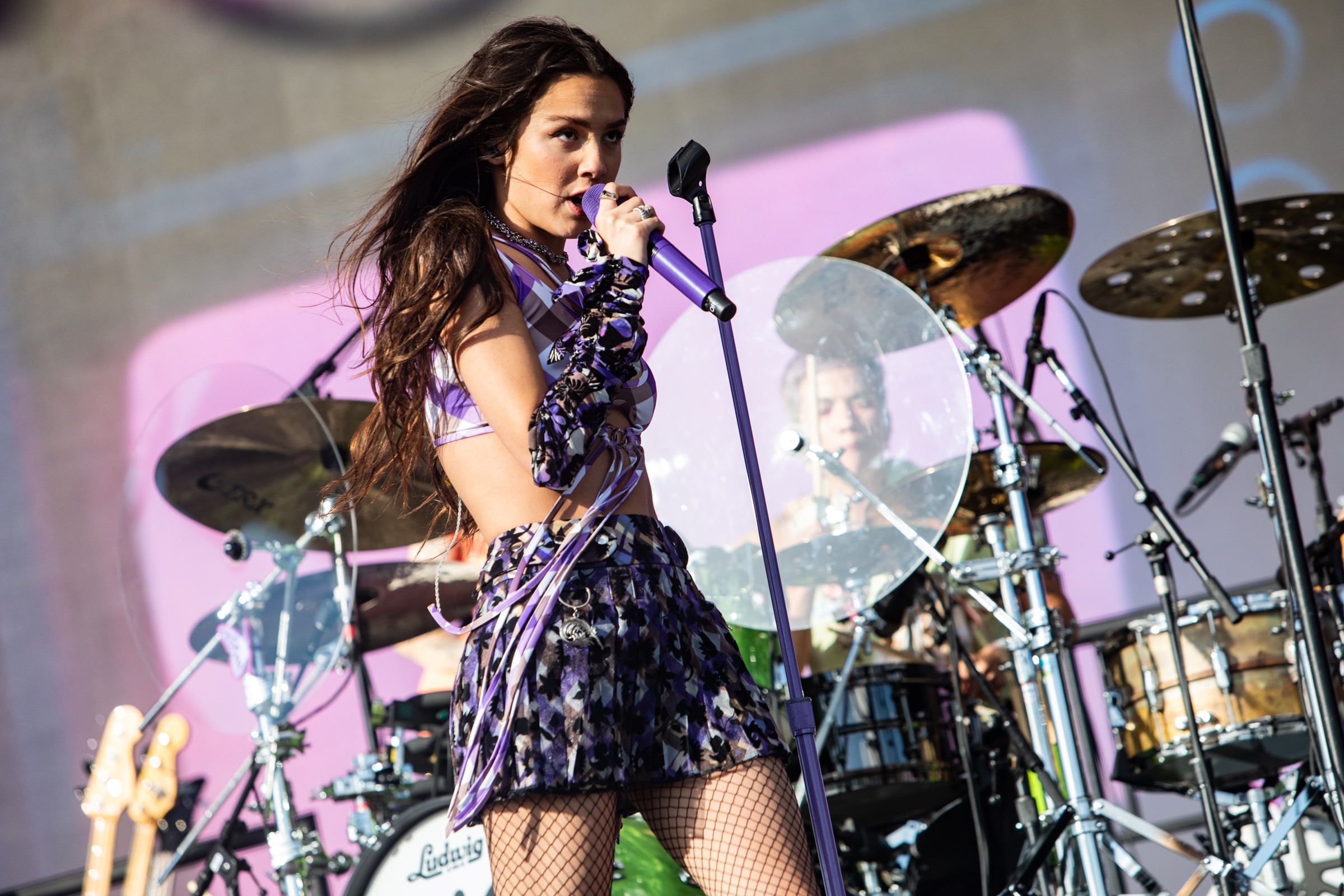 While stage hopping I catch a bit of Asylums over on the Leftfield stage. Personally I think Asylums are criminally underrated – they deserve a far bigger audience than they receive and, with the quality of their songs and the amount of energy they put into their performance they could be playing bigger stages. I haven’t seen them in a few years but they seem to just get better and better; the songs are great and the band members contort themselves into all kinds of shapes while giving it their all performing them. A really fun band, I’m glad I got to stop by for a while to catch them again. I also stop by, a complete contrast, Olivia Rodrigo on the Other Stage – I appreciate I’m not the target audience for her music but clearly there’s a huge number of people excited to see her live, the volume of the fans before she’s even taken to the stage is huge. I also appreciate that her backing band is made up of people of a similar age, rather than just general session musicians – it feels more like a live band than a solo artist in that sense. What’s more to say? She sounds great, the band works well, the kids love it.