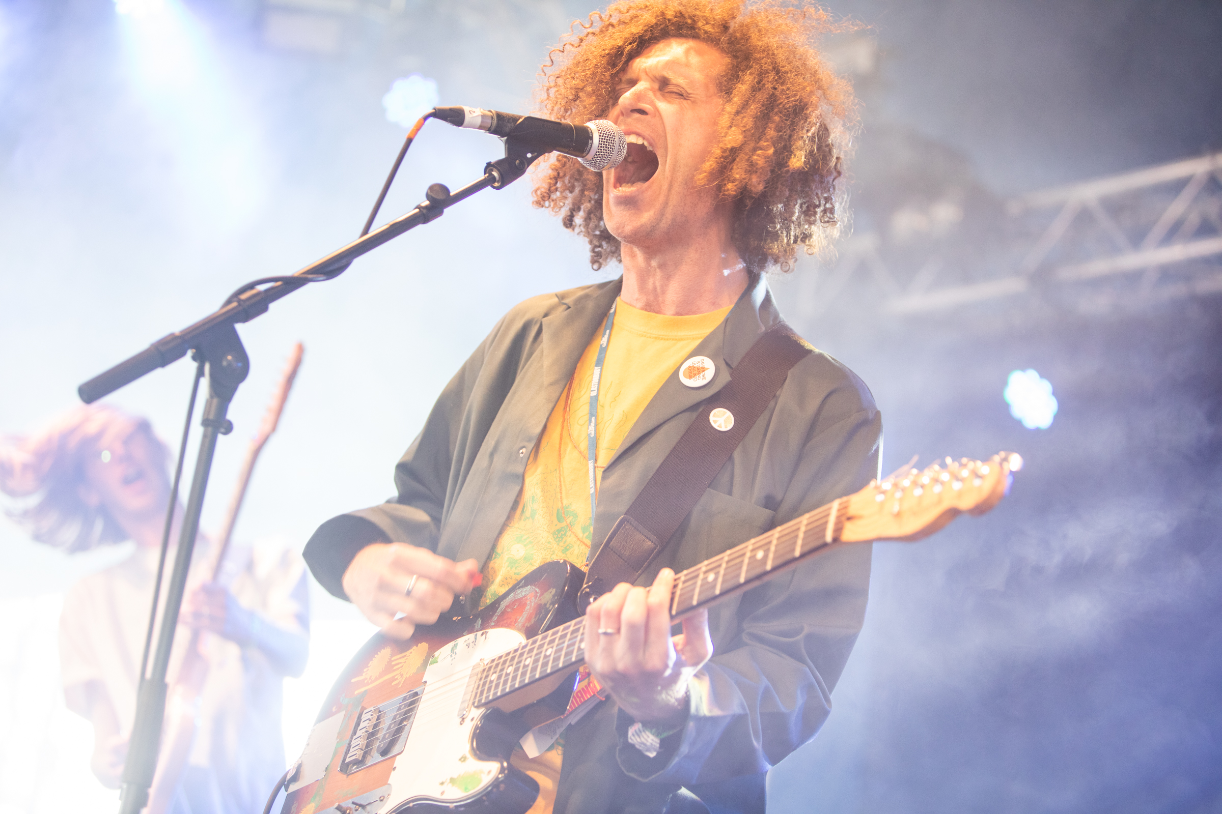 Yves Tumor are a band I’ve only heard a few tracks by (which I definitely enjoyed) so I was curious to see them perform over on West Holts, to hear a bit more of their music in a live setting. Their stage setup means some members of the band are up fairly high – I look at the drum kit towering above the rest of the band and wonder whether the rack tom has ever fallen over the edge. Setup aside, this set is brilliant, one of the best of the weekend. The way the songs have been transferred to a full live band just works perfectly. The vocals sound great, the guitar solos absolutely rip, the whole thing is amazing. Incredible.