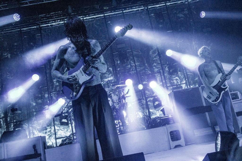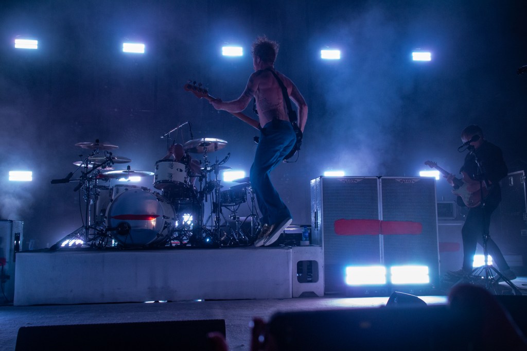 The stage tonight is a bit smaller and Biffy Clyro are a little bit more cramped on stage which perhaps gives the performance a bit more energy, the band members all much closer to each and playing off of one and other. Living is a Problem Because Everything Dies sounds particularly tight this evening, the guitar, bass and drum stabs in the breakdown at such a level of precision that I wouldn’t believe it wasn’t recorded if I couldn’t see the arm movements myself. That Golden Rule may have been around for a while now but it’s held up well – the chorus is a huge singalong piece which definitely transcends borders, the crowd singing along throughout.