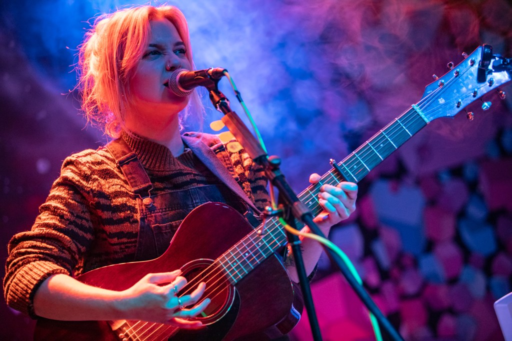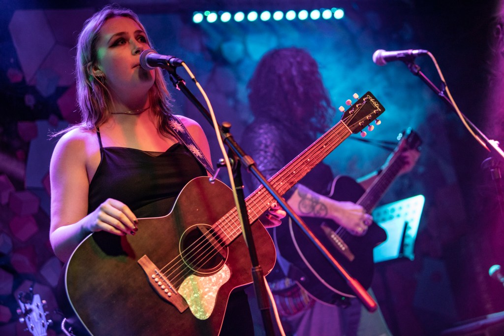 Finishing the night is Polly Haynes who states that she wishes she wasn’t drawn last as she’s a few Guinness in at this point but, on the flip side, the later performance means Sophie Nash can join her with some harmonies. Anyone who’s seen Polly before will already know that she’s one of the best musicians around and a few (many) drinks isn’t going to stop that. She’s perfected her sound and style on guitar over the years to create some really interesting progressions throughout and her voice sounds excellent. By her own admission she doesn’t put much music out there which I think is a shame as she’s easily one of the best songwriters in the area and deserves to be heard by a wider audience.