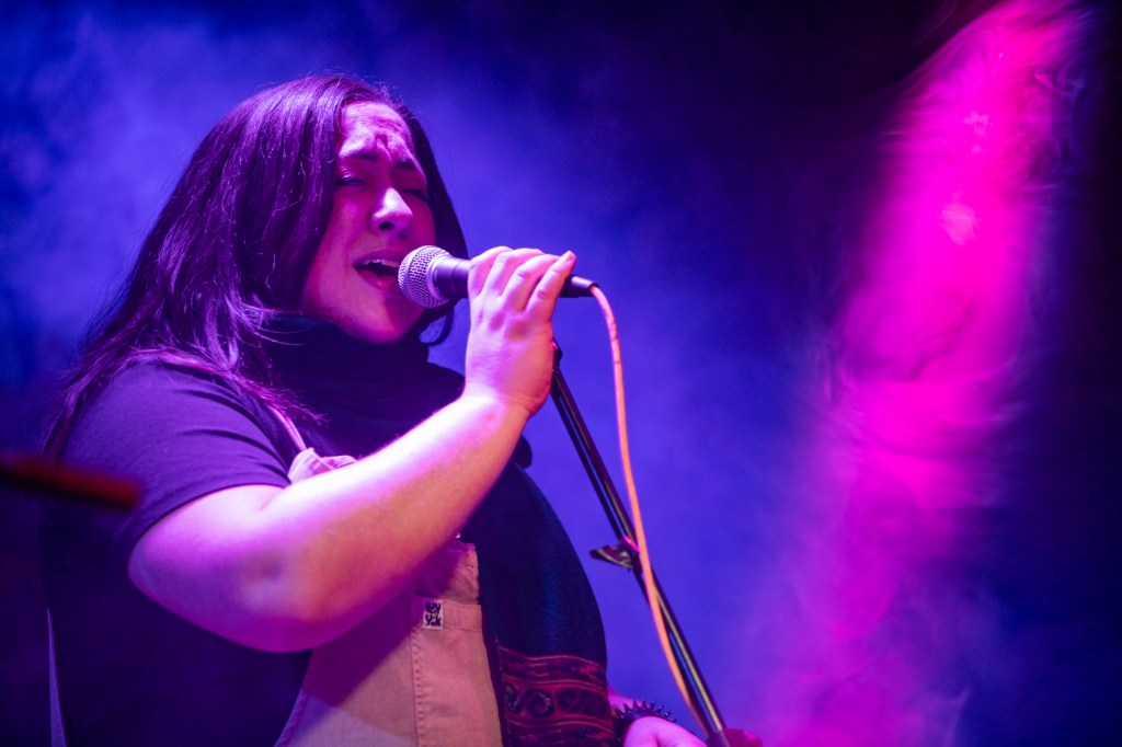 Louise Brett of Ecto Peach was next and she had possibly the most interesting start to her set, acapella with a loop pedal creating harmonies and sections of dissonance in all the right spots. The rest of the set, backed by guitar, sounds great too but I’d love to hear more in the style of the set opener, especially if used alongside the guitar playing. Lyrically very interesting and vocally spot on throughout, I think Louise’s tracks would work whether performed with just guitar or heavily produced with electronics and vocal layers.